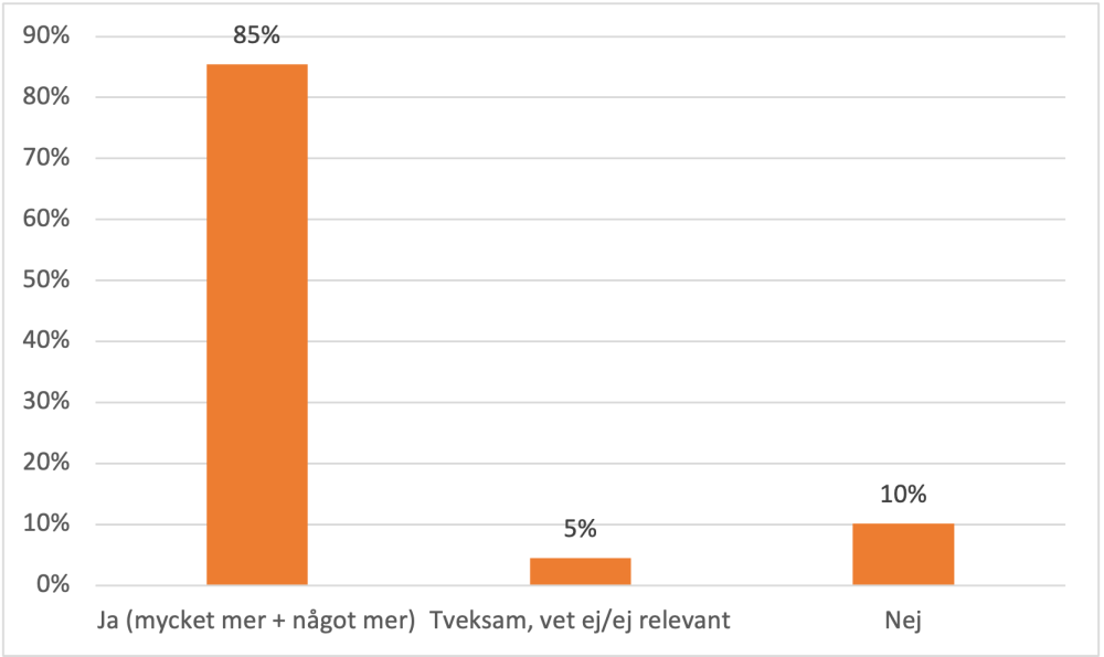 – De allra flesta känner inte någon tydlig stress inför återgång till arbetsplatsen. Dock finns en relativt stor grupp som inte är fullt bekväma och här är det viktigt att man som arbetsgivare bjuder in till dialog. Vad har fungerat bra respektive mindre bra och hur kan vi tänka framåt. De flesta arbetsgivare kommer sannolikt fortsätta erbjuda möjlighet till visst distansarbete även framåt, säger Lena-Karin Allinger.