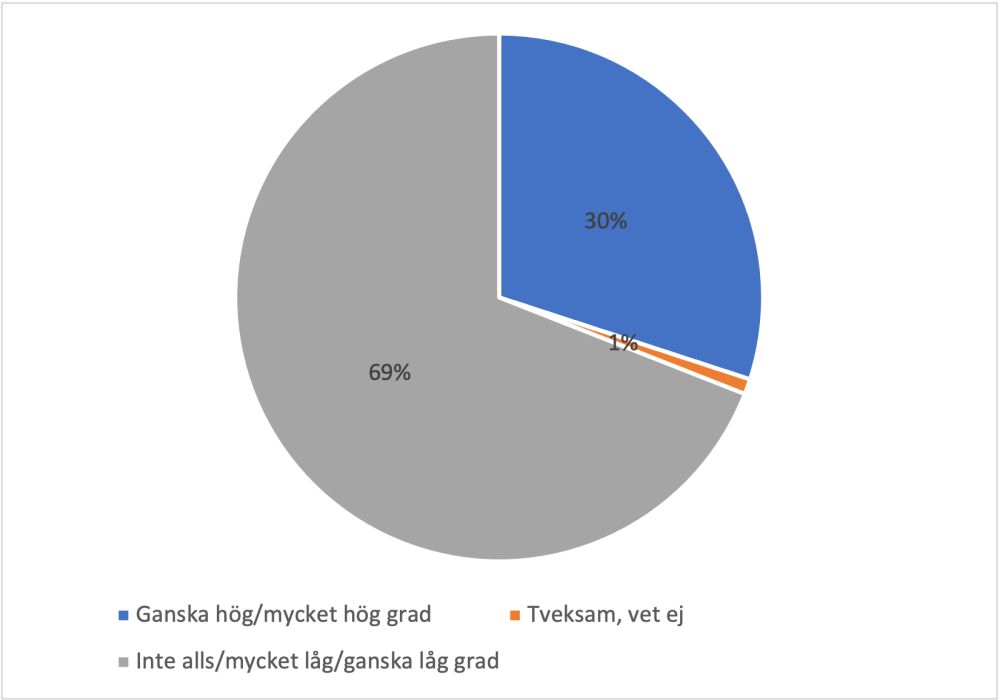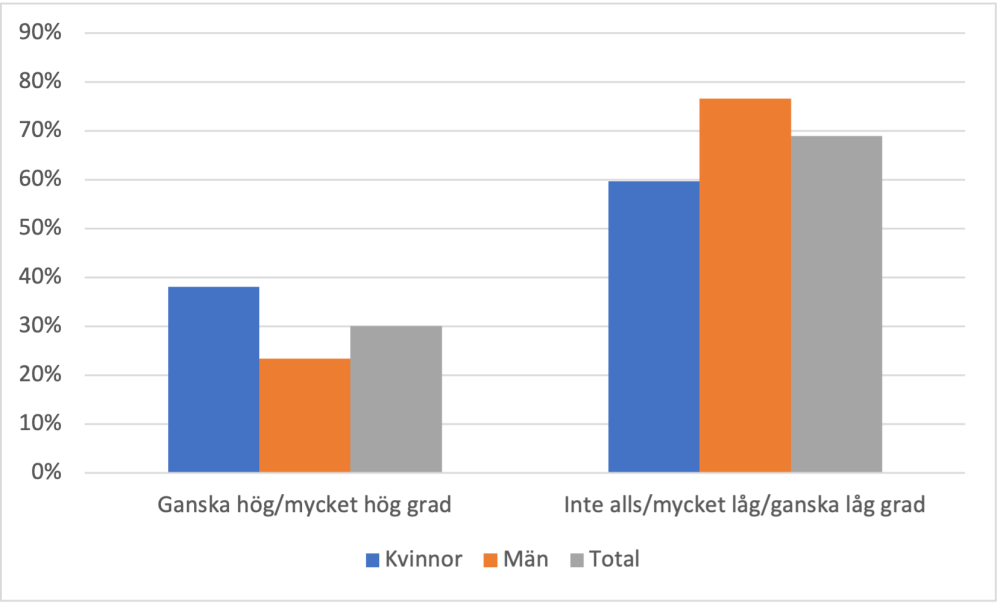 Av de som arbetat hemma och nu återgår till mer arbete på arbetsplatsen uppger sju av tio att de känner låg stress inför återgång till arbete från kontoret. Hög eller mycket hög stress känner 30 procent.